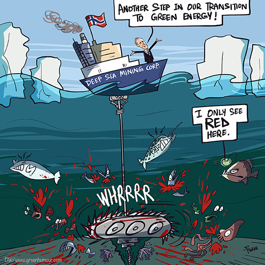 Norway has moved to open up its waters for deep sea mining of geothermal metals, and earned widespread condemnation from environment groups in the process. Cartoon for DW Global Ideas.