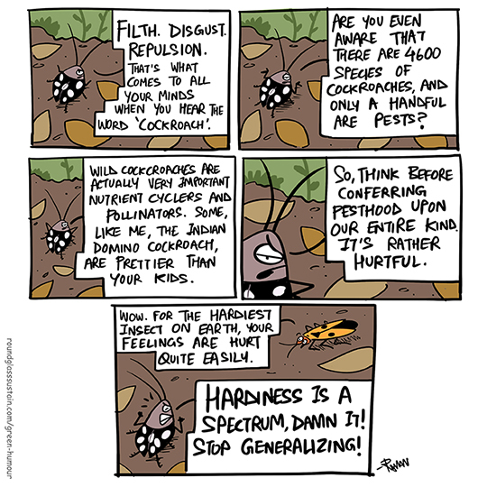 Wild cockroaches are nutrient cyclers, pollinators, and prettier than your kids! Meet the Indian Domino Cockroach in my column with Roundglass Sustain.