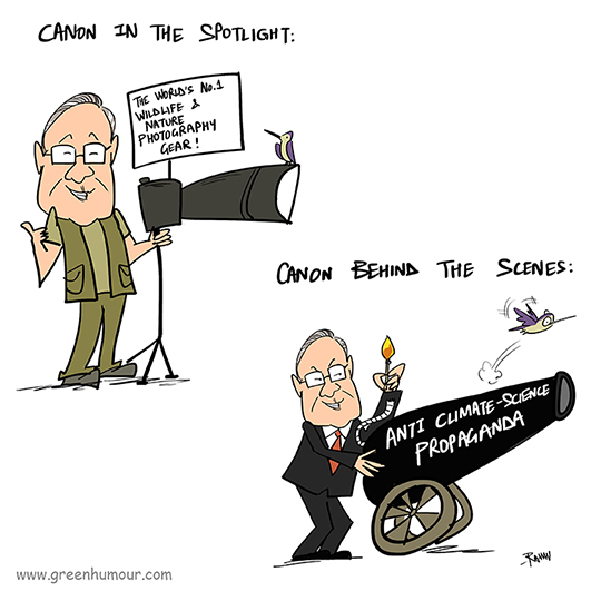 A brand synonymous with wildlife and nature photography on its cover, and climate science denial behind the scenes: meet Canon. Accused of publishing climate propaganda through its think tank, Canon has sparked outrage among photographers and communicators, with even a photography contest being held recently to pressure Canon to stop spreading misinformation.