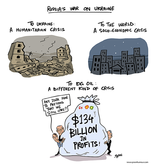 Even as Ukraine reels from one human crisis after another, and Europe reels from shortage of power supply, Big Oil companies have earned record-shattering war profits. Cartoon from my column with The Hindu Sunday Magazine.