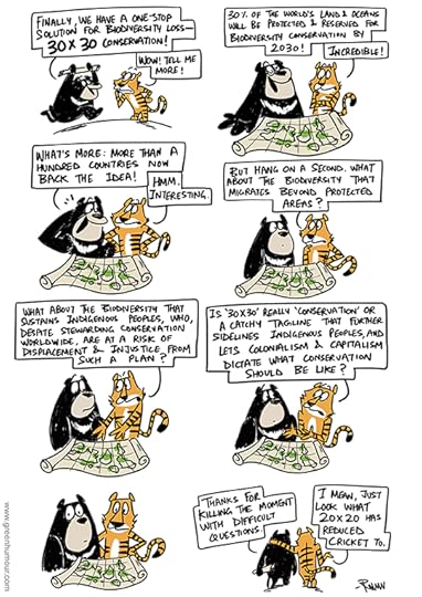 A Black Bear and a Bengal Tiger discuss 30 x 30 conservation, which is proving to be one of the most heated international environmental debates right now, specially in the wake of COP15. Comic from my column with The Hindu Sunday Magazine.