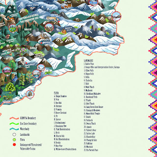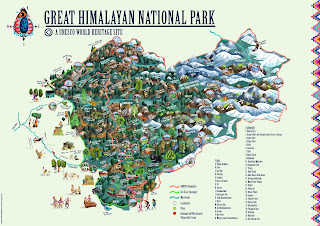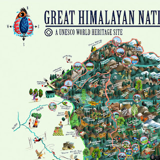 The project, my second with the Himachal Pradesh Forest Department, gave me the privilege of exploring a few of the range forests in one of India's most beautiful national parks. The map will soon be on display and available to visitors as souvenirs at the GHNP interpretation centre in Sairopa. A big thanks to Mr. Nishant Mandhotra of the HP FD for the opportunity! Click on the images to view some snapshots of the illustration.