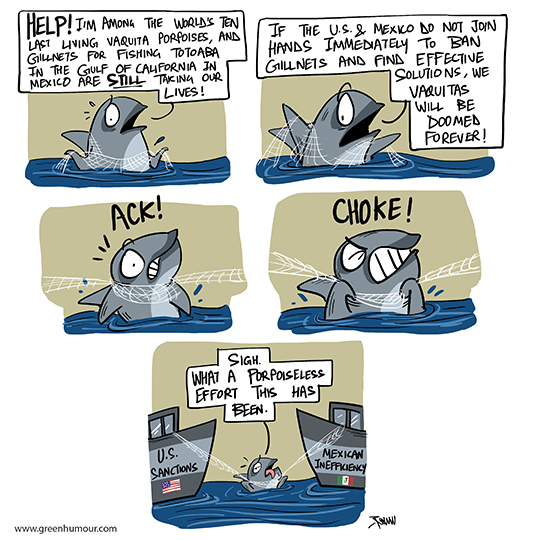 The Vaquita's journey has been fraught with unforeseen complexities. US embargos on the Mexican fishing industry have inadvertently been encouraging the spurt of illegal Totoaba fishing (for Chinese markets) further endangering the Vaquita. Mexico's incapability to fund and implement alternatives for fishing communities has now brought the population of the Vaquita down to a dismal ten. This tug of war is only likely to choke the Vaquita further. Has the countdown to the extinction of the world's smallest porpoise begun? Comic from my column with The Hindu.
