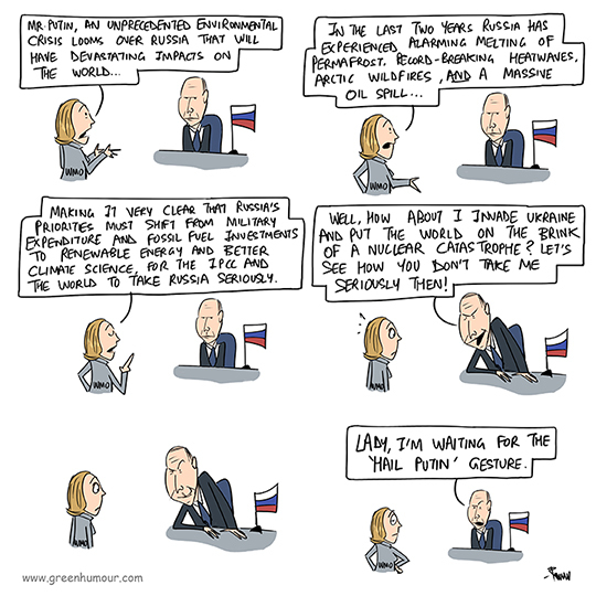 The World Meteorological Organization has been warning Russia about looming environmental crises. What has Putin's response to those warnings been? Comic from my column with The Hindu.