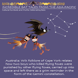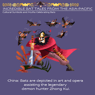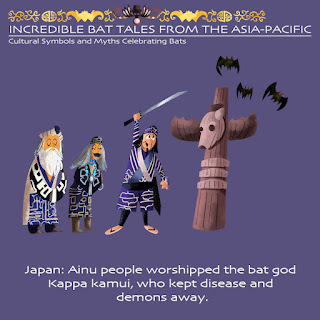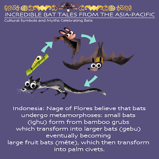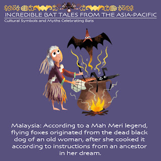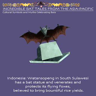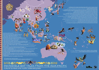 (click on the images for a larger view)Media propagated myths about bats have long tarnished their reputation as creatures of horror and harbingers of death. It is time to undo that, and what better way than to go back to our roots? Here is a map that showcases how different countries, mythologies and cultures in the Asia Pacific celebrate and revere bats. The illustration is based on an incredible research and publication by Pteropus (Rimba, Malaysia) who also commissioned the illustration.