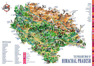 The map, released officially during the Wildlife Week in October, is up for display at various offices and interpretation centres in the state, and will soon be out as souvenirs. Please note that prints of this illustration are not for sale through my store, and the copyrights belong to the HP Forest Department.