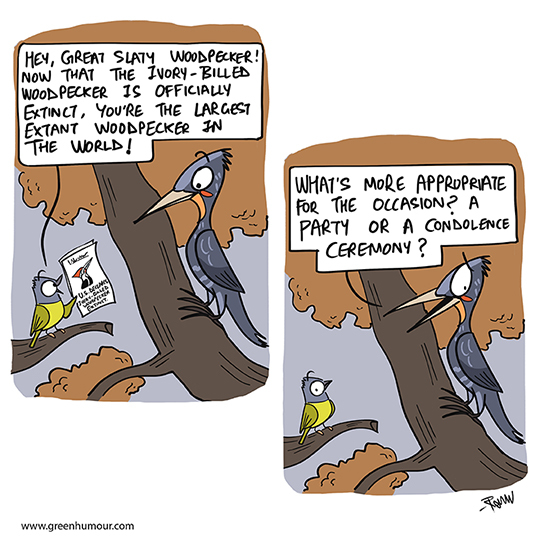 Did you know that the extinction of the Ivory-billed Woodpecker makes an Indian woodpecker species, the Great Slaty Woodpecker the largest wild woodpecker in the world? Cartoon fro my column with The Hindu Sunday Magazine. Thanks to Raman Kumar of the Nature Science Initiative who let me in on this bit of trivia.