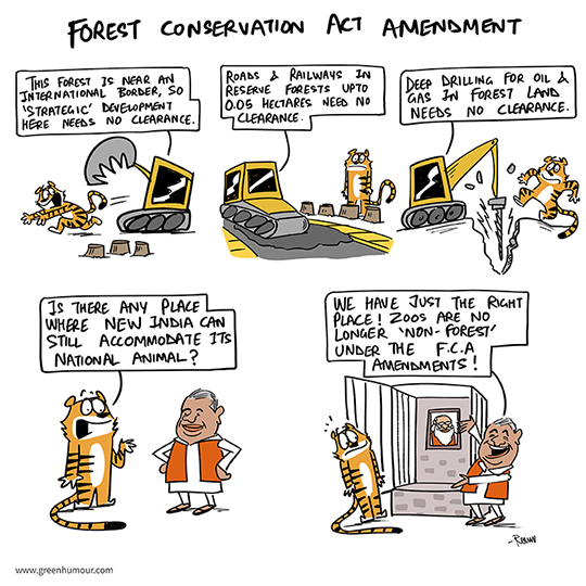 In yet another 'masterstroke' by the Government of India, a very problematic set of amendments to the Forest Cpnservation Act has been proposed, and only 15 days have been allotted to receive comments. These are just a few of the points of contention presented in this comic from my column with Sunday Mid-Day. More details are in this article in The Hindu. Do read and offer your comments on the amendment on the Civis website here, which also has a summary of the bill.