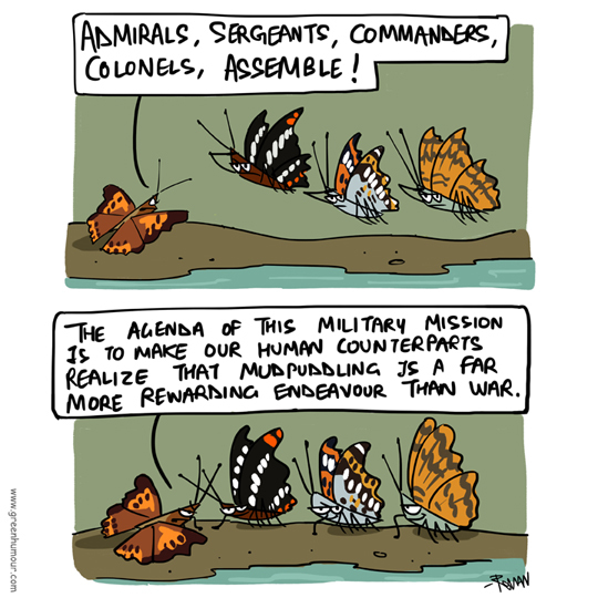 Ever wondered why so many butterfly species bear military rankings as their names? That's because the people who named these species were British military officers. Cartoon from my Roundglass Sustain column.