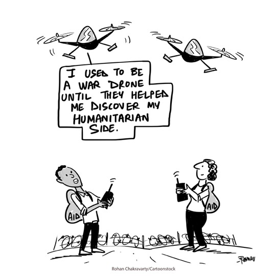 Cartoons done for a Cartoonstock Cartoonathon for a Red Cross Red Crescent seminar that discussed the advantages and drawbacks of using artificial intelligence and technology for humanitarian aid work in conflict zones, moderated by Samantha Vuignier, and with fellow-cartoonists Rebeka Ryvola and Kendra Allenby for company.