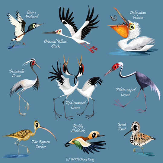 Some wetland birds I illustrated for a project on wetland management and conservation for WWF Hong Kong last year.