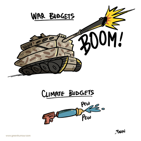 War budgets versus climate budgets. Cartoon from my Gocomics gallery, also available royalty free on my Cartoonstock gallery.