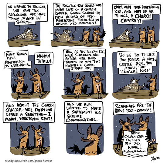 Comic from my column with Roundglass Sustain. Read more about the church footage from Castenray, Netherlands, leading to a scientific report on the Serotine bats here.