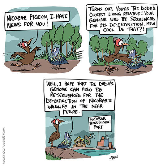 Did you know that the Dodo's closest living relative lives in India? And that its genome may soon be used in the efforts to bring the Dodo back from extinction? And that its own existence, like all of Nicobar's other wildlife, is imperiled by the upcoming Nicobar Transshipment Terminal?