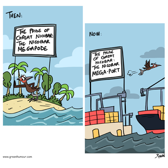 What will be the ecological cost of the 10,000 crore transshipment port being planned at the Great Nicobar Island? Cartoon from my column with The Hindu.
