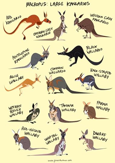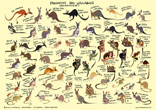 Meet the kangaroos and wallabies of the world in this brand new poster! These members of the family Macropodidae are distributed across Australia and New Guinea, and comprise around 60 extant species. The compilations are available as a wide range of prints, apparel and merchandise on my webstore here.
