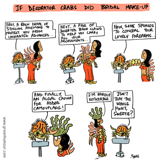 Meet the Decorator Crab, that uses other organisms for concealing itself from its predators! Comic from my column with Sunday Mid-Day. I learned about this fascinating organism in this amazing article by Chetana Purushottam on RoundGlass Sustain.