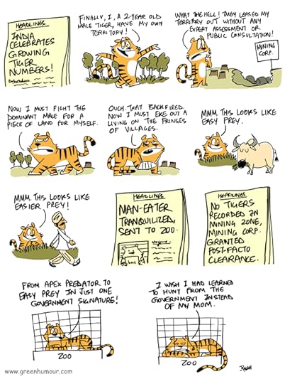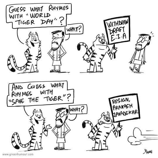 Draft EIA and the Tiger. Comic from my column with Sunday Mid-Day. The deadline for registering your objection to the Draft EIA is just one week from now. Remember that if you represent an government board or a government affiliated organization, it isn't your weakness but your strength, as the collective voices of you and your colleagues will make a lot more impact than other individuals.