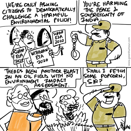 Among the many projects that will benefit from the disastrous draft EIA notification 2020, is the needless redevelopment of Delhi's Central Vista. The mega construction project that will involve significant loss of tree cover in the world's most polluted city, is expected to further worsen Delhi's air quality and respiratory health. Cartoon from my column with The Hindu.
