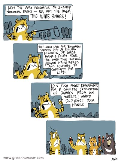 Illegal wire snares laid for bushmeat are killing a lot more they're intended for: tigers, leopards and bears. Comic from my column with Roundglass Sustain.