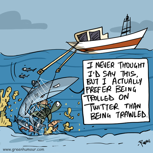 How bad is bottom trawling? Worse than being Twitter-trolled. That bad. Cartoon from my column with Roundglass Sustain.