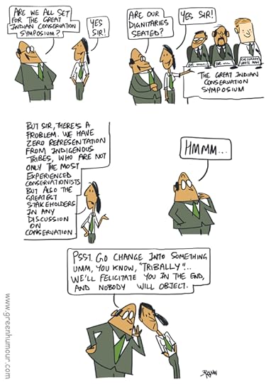 On the conspicuous absence of tribal and indigenous voices from The Great Indian Conservation Symposium. Comic from my column with The Hindu.