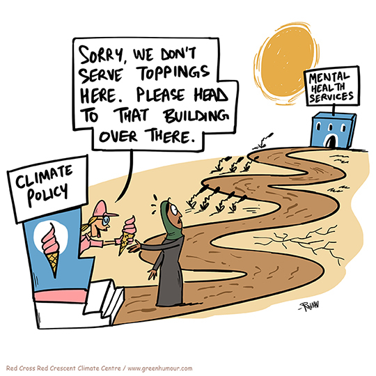 I recently had the opportunity to attend the Red Cross Red Crescent Climate Centre's conference on the intersections between climate change and mental health, with a focus on the Middle-East and North Africa, as part of the Connecting Climate Minds programme. These cartoons were drawn live during the three hour long online conference (and furnished later), based on inputs from speakers, researchers and activists participating in the conference.