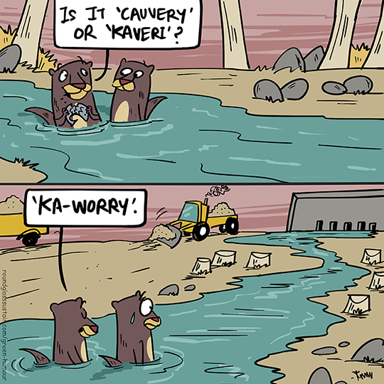 Is it ‘Kaveri’or ‘Cauvery’? The South Indian river’s Smooth-coated Otters discuss, in my column with Roundglass Sustain. The river is threatened by dams, sand mining, blast-fishing and deforestation.