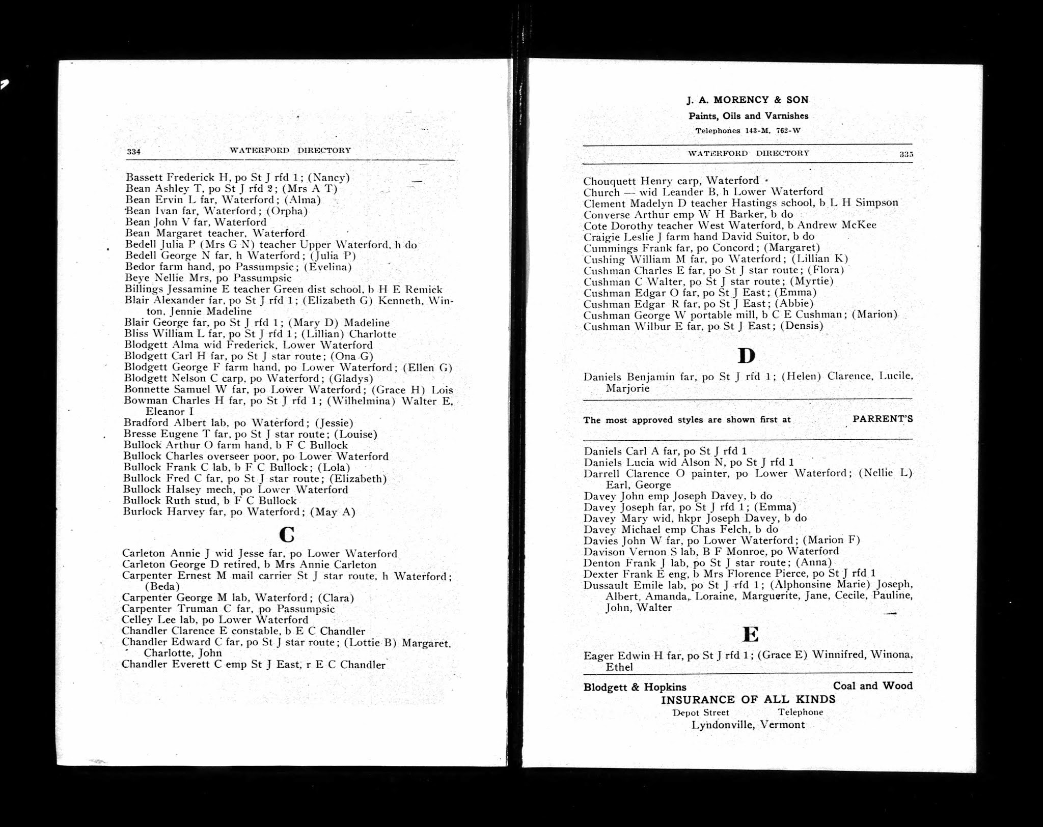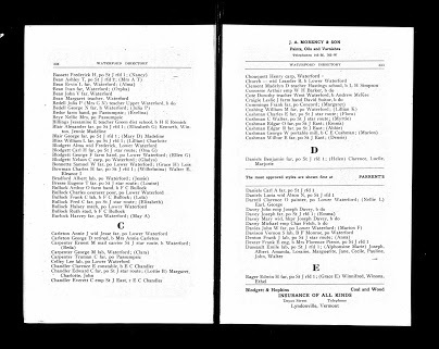 Mrs. Maude C. McCosco was a teacher who boarded at 159 Railroad Street in St. J. She was the second wife of Basil Winfred McCosco (born in West Danville in 1872, died in St. J in 1920). Her marriage took place in 1912, and her name before the marriage was Winifred Maude Blair Clifford (she lived from 1879 to 1967).
