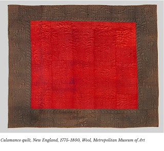 If, like me, you have no idea of what "calaminco" means here -- check out this handy article by Leimomi Oakes, a textile and fashion historian, who says "Calamanco (also spelled callimanco, calimanco, and kalamink) is a thin fabric of worsted wool yarn which could come in a number of weaves: plain, satin, damasked, and was even brocaded in floral, striped and checked designs. The surface was glazed or calendered (pressed through hot rollers)."