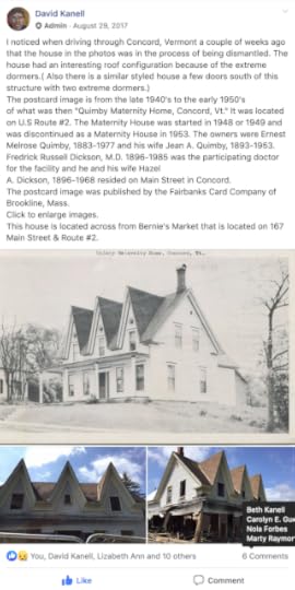 CAPTIONS:The Facebook piece that Dave Kanell posted, which launched our grass-roots research into how maternity homes functioned in the Northeast Kingdom.