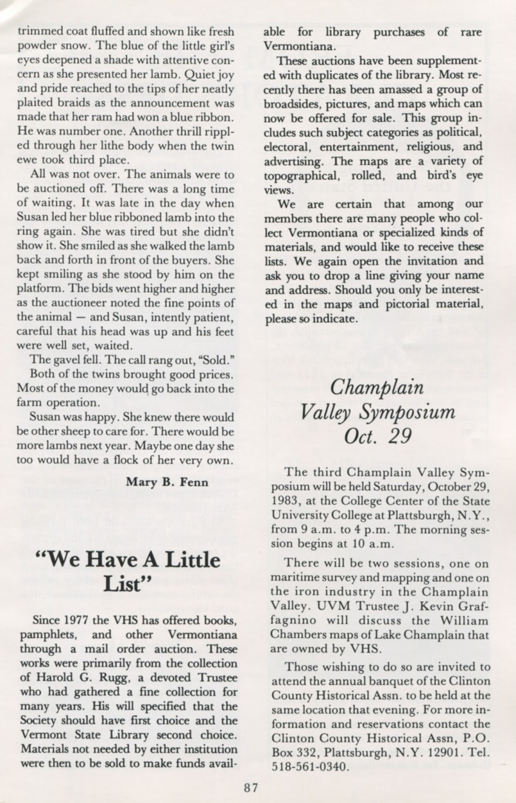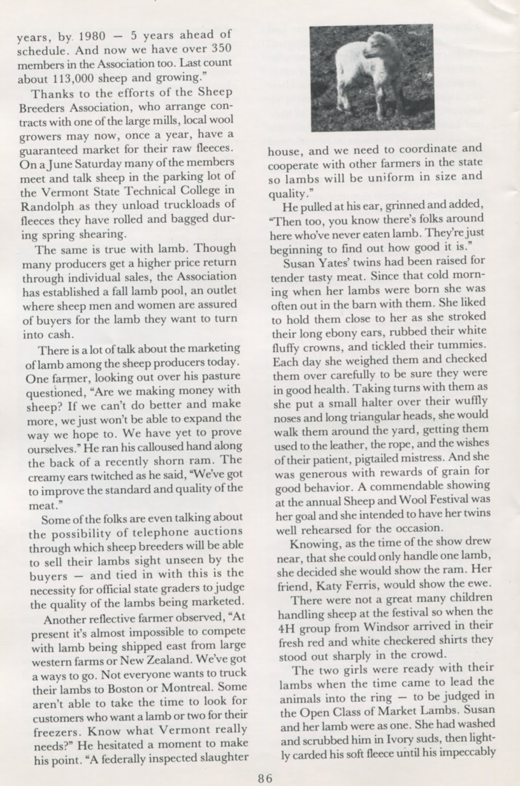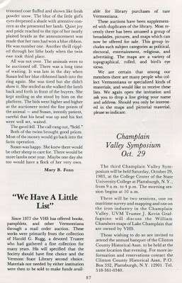 Below: Sheep article from Vermont History News, Sept.-Oct. 1983