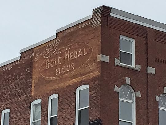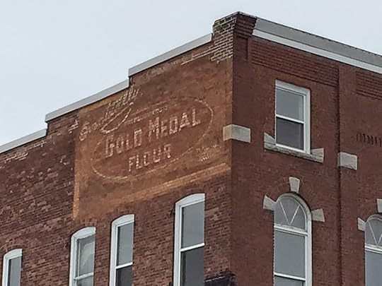 But other than her personality, everything else about Almyra's story, set in 1899, depends on research to frame it. So I walk a lot in the nearby towns, looking for signs of the "old days" along the way. The "Gold Medal Flour" advertisement on an upper wall of the "Brick Diamond" building in Lyndonville (better known locally as the building where Edmund's Drug Store used to be) captures a bit of that 1899 commercial feeling.