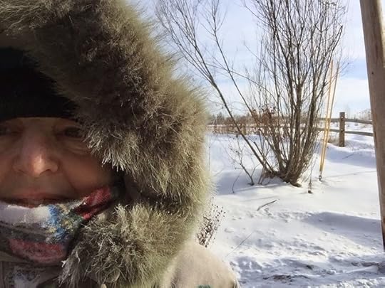 Almyra would be outdoors on a day like this -- she had little choice! And she'd add layers the way I did, although I doubt that she would have worn the pair of brightly striped Ecuadorean knitted legwarmers that made my final-layer fashion statement of the morning. But she would have loved my fuzz-trimmed hood! I already know that she seeks comfort, at the hardest moments of her life, in going to a quiet place outdoors and letting her heart become calm. Me, too.