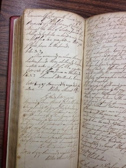 And while that takes place, I have two more books in process that involve historical research (thank you, Dave!). Gathering the books and documents makes up maybe half of that -- and the rest is legwork and photos and thinking. For instance, here are some of the town record pages from the earliest settlement years in Barnet, Vermont. Look closely and the first one and you'll see shillings and pence! The second suggests the town was keeping track of people's work hours on some collaborative projects in 1789. Who would have guessed? There's no better way to put the late 1700s into perspective than to search for, find, gently touch, and think about pages like these. Right?