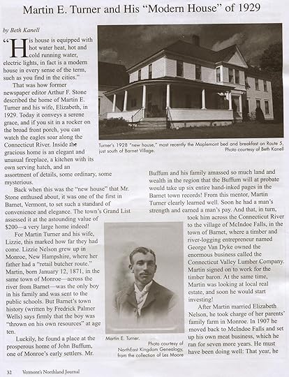 Here at the computer, I've reached back to the 1920s in recording oral history with Mrs. Irene Dolgin Goldstein, out across the oceans learning about Syrian migration to Vermont around that same time period and earlier, and into universities, asking very knowledgeable professors for help with, say, geology or archaeology or the stories of place names. And then there was the very nice person in New Jersey who provided permission to use a photo (shown here: Martin Turner, of Barnet, VT, and Monroe, NH).