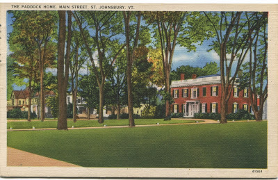 My husband Dave recently gave me a postcard image that shows one of the important locations in my 1850 Vermont adventure, THE LONG SHADOW (busily seeking a publisher). This is the house where Alice Sanborn and her friends decide they have no other choice -- they race for the horse and carriage and ... but I'm getting ahead of myself. Here, instead, is how the book begins: