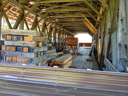 Now and then, it's also nice to go back to that kind of moment. In the last couple of years, I've become very fond of the Sanborn covered bridge in Lyndonville. It helps, of course, to know that the original bridge owner was a very, very distant cousin of mine (my mom would have been thrilled). But also I find the construction and the bridge's long life satisfying. My next novel (the first draft will start at the end of September) is set in Lyndonville, a mystery of course, and I may have to include the bridge as a symbol of how much easier it is to get along with "things" than with people!