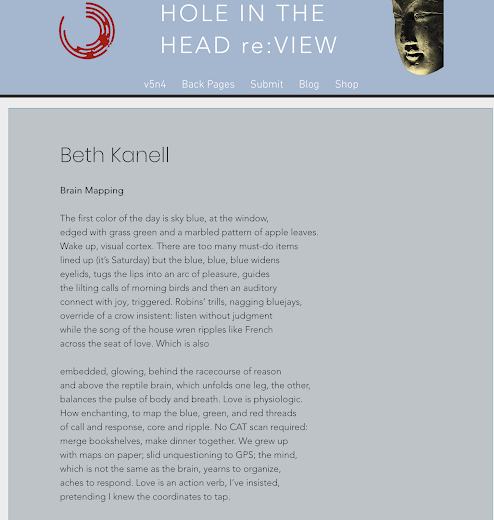 In the past few months I've tried writing poems in clusters around themes, and MAPS became one of them. So I was tickled when Hole in the Head Review published this one. If the type here feels too small, look on their page at this link.