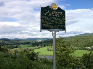 The second photo carries some details of the history of what's out there: Comerford Dam, so impressive in 1930 that for its first day of operation, the U.S. President triggered the "on" switch; there's even a description of the size of the lake formed behind the dam on the Connecticut River. But the sign doesn't mention one of the most significant aspects of this dam: It was the first on this body of water to NOT have a sluice gate for logs to pass through -- marking the end of the great river logging era in Vermont.