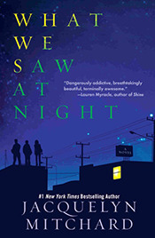 The second is a firmly traditional mystery, in a less conventional setting: Jacquelyn Mitchard's WHAT WE SAW AT NIGHT. If the title evokes a hint of The Curious Incident of the Dog in the Night-Time (Mark Haddon), I think that's no accident -- because in Mitchard's book as well as Haddon's, the people we care about are separated from the rest of "us" by conditions of difference that arrived with their genes. In Mitchard's book, Allie Kim and her best friends Rob and Juliet suffer from xeroderma pigmentosum, a "severe allergy to sunlight." (The scientist part of me insists on clarifying: The condition actually means that the body cannot repair damage caused by ultraviolet light. But hey, if we can call alcoholism an allergy to alcohol, I guess the allergy motif works here, too.) The result of this shared disorder is that the three teens mostly emerge at night. Add their fascination with the discipline and daring of parkour -- an extreme sport -- and Allie, Rob, and Juliet take to climbing tall buildings in the dark. Inevitably, they see something criminal. But they're up against a very crafty psychopath with the skills and knowledge to make the teens appear to be the guilty ones. Not only that: It looks like Juliet is being compelled to submit to abuse, with her friends as hostages.