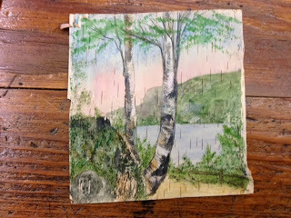 I have several posts lined up for you (some Chinese-related postcard images; some announcements), but before I get down to serious work on those, I wanted to share this enchanting birchbark "greeting card" sent to a Lyndonville, Vermont, resident in the 1960s. It is part of a collection that arrived at the Lyndon Historical Society this year, shown at the end of the group's meeting on Tuesday Oct. 15.