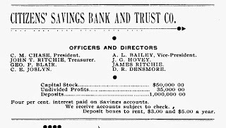 The property owner was J. G. Hovey, and here is an ad from an 1894 church cookbook bearing his name: