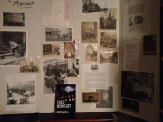 Last Friday evening, eight women from my extended neighborhood (the closest lives a few houses away; at least one had an hour-long drive) gathered for their monthly book discussion, and I was honored by an invitation -- they had (all but one) just read my newest novel, COLD MIDNIGHT, so I brought a display of photos and old postcards that were part of the research for the 1921 setting, and told the tale of the historically read murder of Sam Wah, a Chinese laundry owner who was 75 years old in 1921, in St. Johnsbury, Vermont. (I keep an even larger collection of related images at the book's Pinterest site, here: http://pinterest.com/bethkanell/cold-midnight-climbing-on-roofs-at-night-solving-c.)