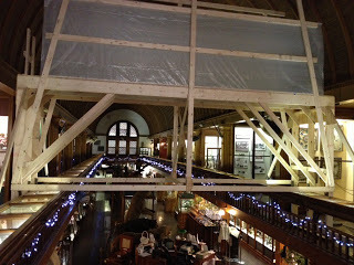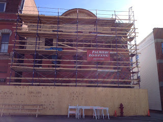 I'm watching closely, because (a) I'm so glad to see the structure rise again, (b) I have a lot of respect for Mr. Ravel, who has long been a downtown landlord who cares about his buildings (this one wasn't insured -- but he's having it rebuilt anyway, out of his own pocket and with some help, and (c) it's part of the "back story" for the novel I'll be writing in 2014, THE FIRE CURSE.