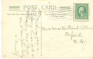 Meanwhile, to get you in the mood, here is a real postcard, sent in 1921 as a holiday greeting, postmarked St. Johnsbury. It's a small world, so if you happen to know something about the sender, or the addressee, please do let me know!