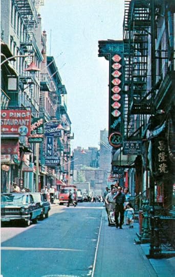 Moreover, the postcard shown here, with its colorful image as if one were traveling abroad, is of Chinatown in New York in the 1960s, and my husband Dave, who contributed it, transcribed the material typed on the back: