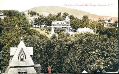I took a quick look and found a history of Stamford -- whose early settlers had ties to Stamford, Connecticut. There are some intriguing gaps in the history I found: enlistment for the Civil War, but what was happening in town during the Underground Railroad years? Why was the first newspaper founded in 1851? I can imagine a mystery taking place that relied on who was publishing the paper and what his motives were! And another that takes into account the villages of the town, the differences between them, the way families settled. Plus, because the town is in the Catskills, there must be stories of the tourists and summer residents, including some from various ethnic groups that could be surprising. Wow!