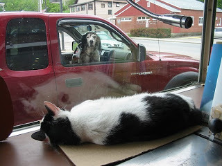 What a wonderful evening; thank you, Linda and Sandy and guests. One of the bookstore cats came out to say goodbye.