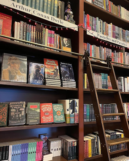 But New York City's The Mysterious Bookshop, which described itself as the oldest mystery bookshop in the world, devotes almost as much shelf space to Holmes pastiche and parodies as it gives to the original works. I share this photo from the shop's Facebook feed (thank you, Otto Penzler and team) to make the point: